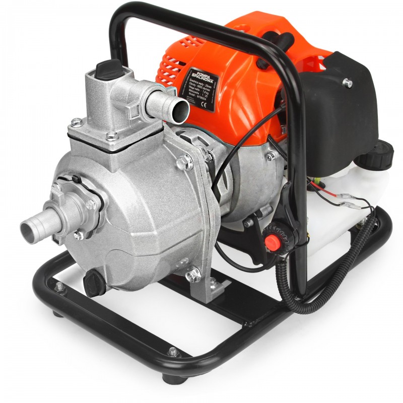 Pompa wyposażona została w 2-suwowy silnik spalinowy, który jest w stanie uzyskać wydajność pompowania wody na poziomie 130 do 300 l/min. Wydajna metalowa pompa uzyskuje maksymalną głębokość ssania do 8 metrów, a długość odcinka podającego wodę może wynosić do 25 metrów.